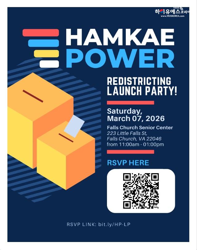 버지니아의 미래와 한인 커뮤니티의 정치적 역량을 결정지을 중요한 주민투표가 시작되는 가운데, 시민단체 ‘함께파워(Hamkae Power)’는 오는 3월 7일(토), 공정한 선거구 확립과 한인 사회의 대표성 강화를 위한 특별 캠페인 출범 행사를 개최한다.