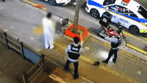 이에 경찰은 테이저건을 추가로 발사하고 삼단봉과 방패로 무장한 채 동시에 제압에 나섰고, 결국 경찰 4명이 달려들어 A씨를 붙잡았다.