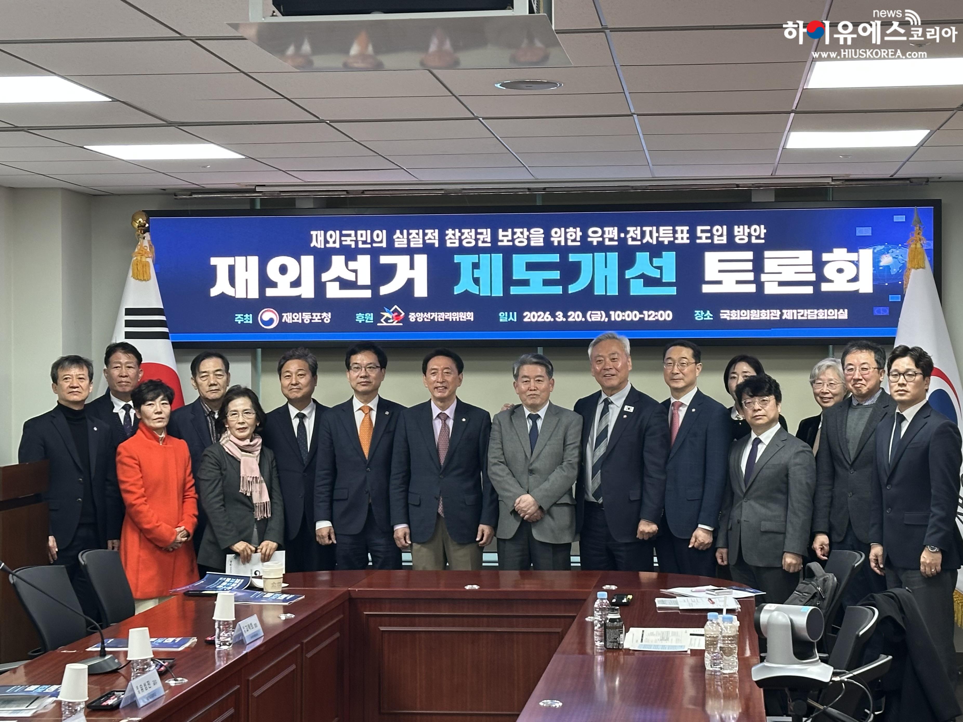 20일 여의도 국회의원회관 제1간담회의실에서 ‘재외국민의 실질적 참정권 보장을 위한 우편·전자투표 도입 방안’ 토론회가 열렸다.