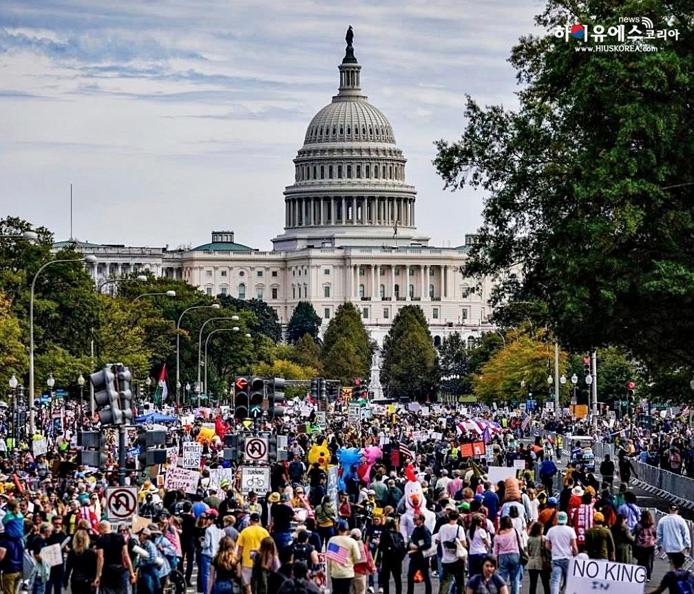 연방 정부의 심장부인 워싱턴 D.C.에서는 수천 명의 시민이 거리로 쏟아져 나와 거대한 저항의 물결을 이뤘다. 시위대는 링컨 기념관 앞에 집결하여 내셔널 몰을 가로질러 행진하며 “왕관을 내려놓아라”, “정권 교체는 집에서부터(Regime Change Begins at Home)” 등의 구호를 외쳤다. 백악관 인근 도로 역시 트럼프 행정부의 권위주의적 행보에 반대하는 피켓들로 가득 찼다.
