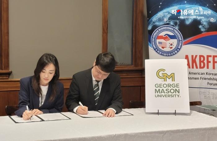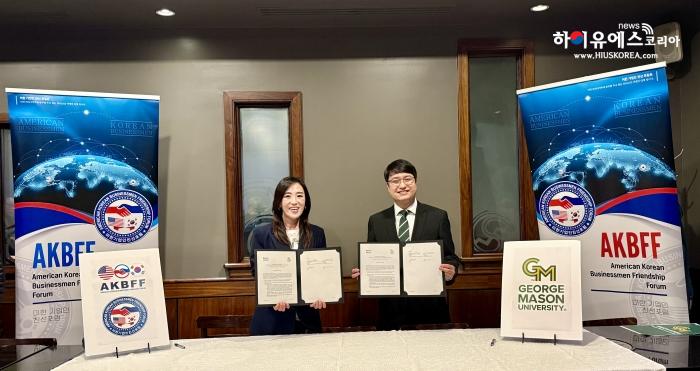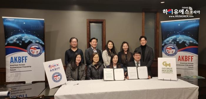 미한 기업인 친선 포럼(AKBFF 회장 강고은)은 지난 27일 조지메이슨대학교 한국캠퍼스와 협력강화를위한 양해각서(MOA)를 체결하고, 학계와 한인 비즈니스 커뮤니티 간 협력 강화를 위한 기반을 마련하였다.