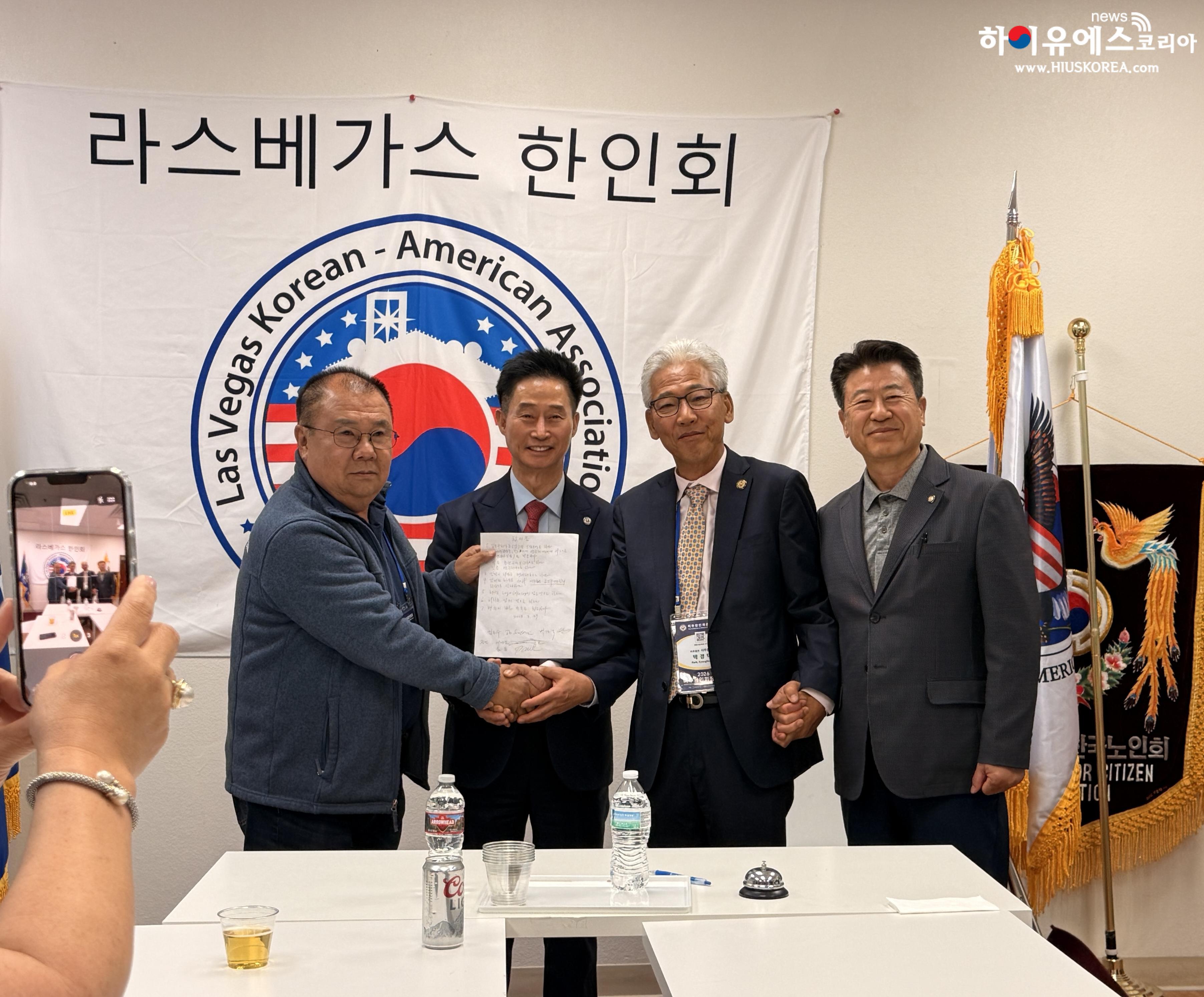 2026년 3월 29일 오후, 네바다주 라스베이거스 한인회관에서 미주 한인사회 중남부 지역의 분열을 봉합하기 위한 역사적인 통합 회담이 열렸다. ‘미주한인회 중남부연합회’(회장 김도수)와 ‘미주한인회총연합회 중남부연합회’(회장 박경덕)는 약 3시간에 걸친 격론 끝에 7개 항의 합의문에 서명하며 극적인 통합의 물꼬를 텄다.