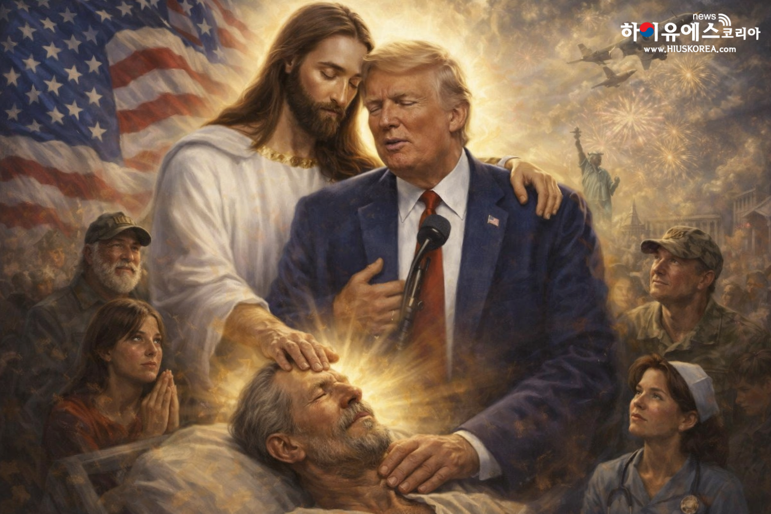 트럼프, 이번엔 예수 품에 안겼다…”자신을 예수에 빗댄 이미지 게시하기도”