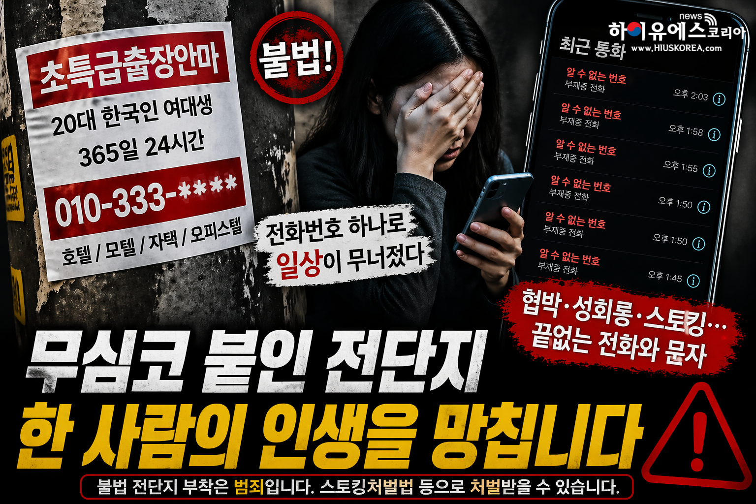 특정인의 연락처를 공개해 불특정 다수의 접촉을 유도하는 행위는 스토킹 처벌법 위반에 해당할 수 있으며, 허위 사실이나 성적 이미지를 결합할 경우 명예훼손 또는 모욕죄까지 적용될 수 있다.