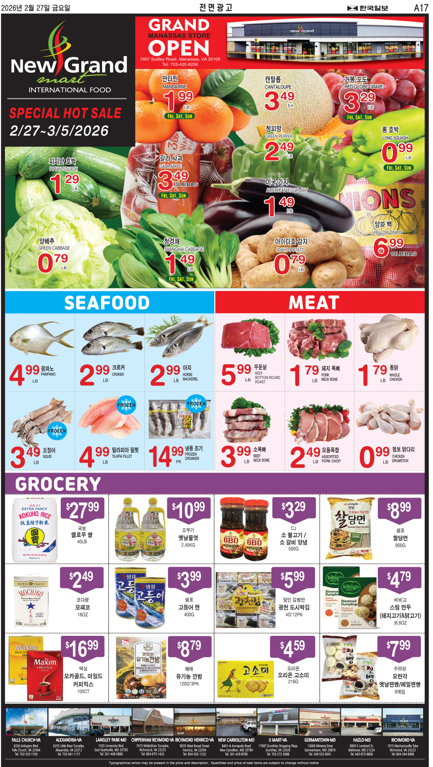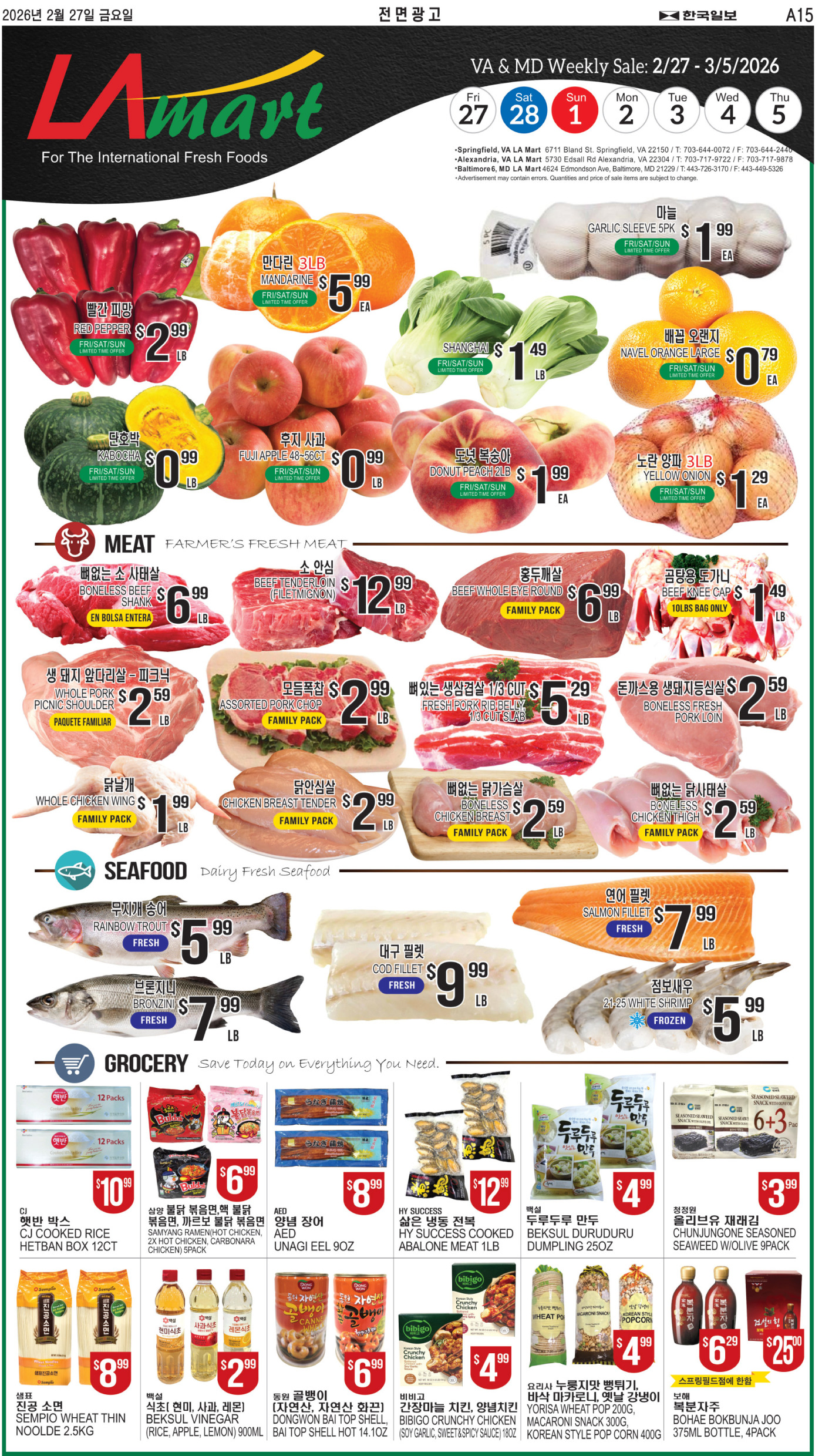 딸기 $0.99/lb, 고구마 $0.89/lb, 배추 $0.99/lb 등 신선 농산물 초특가