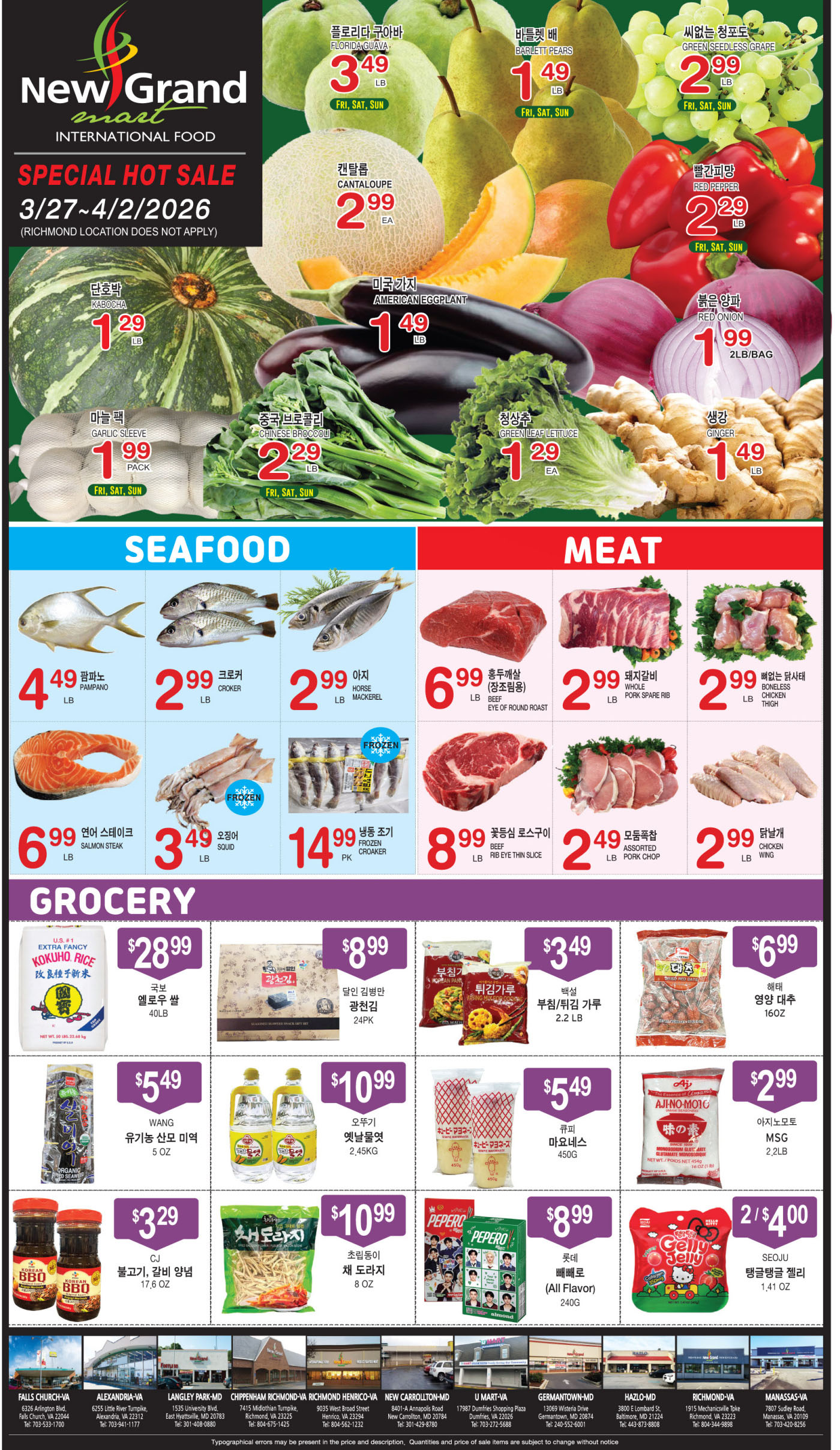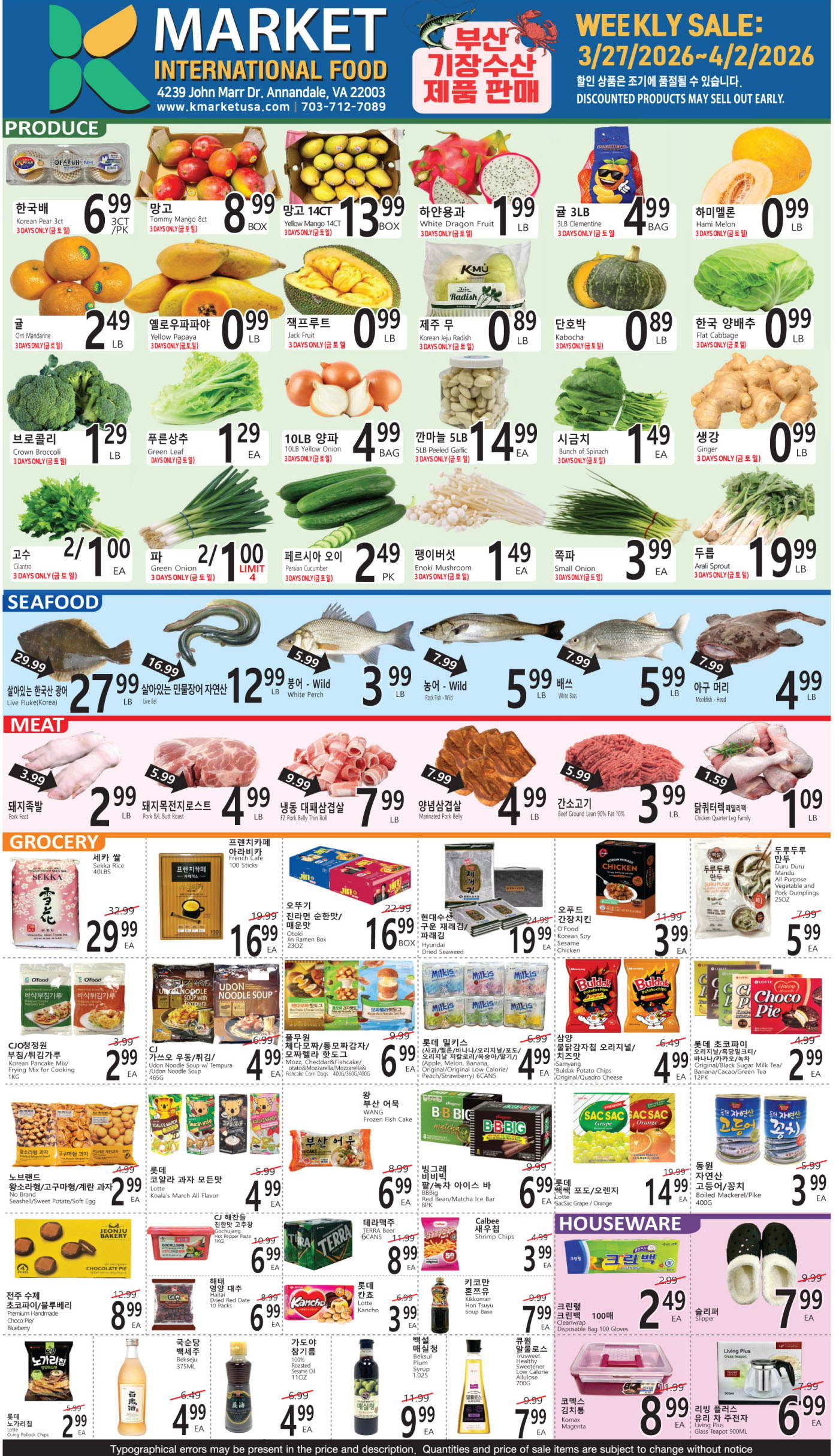 워싱턴 DMV 지역 마켓 세일정보(3/27-4/2)