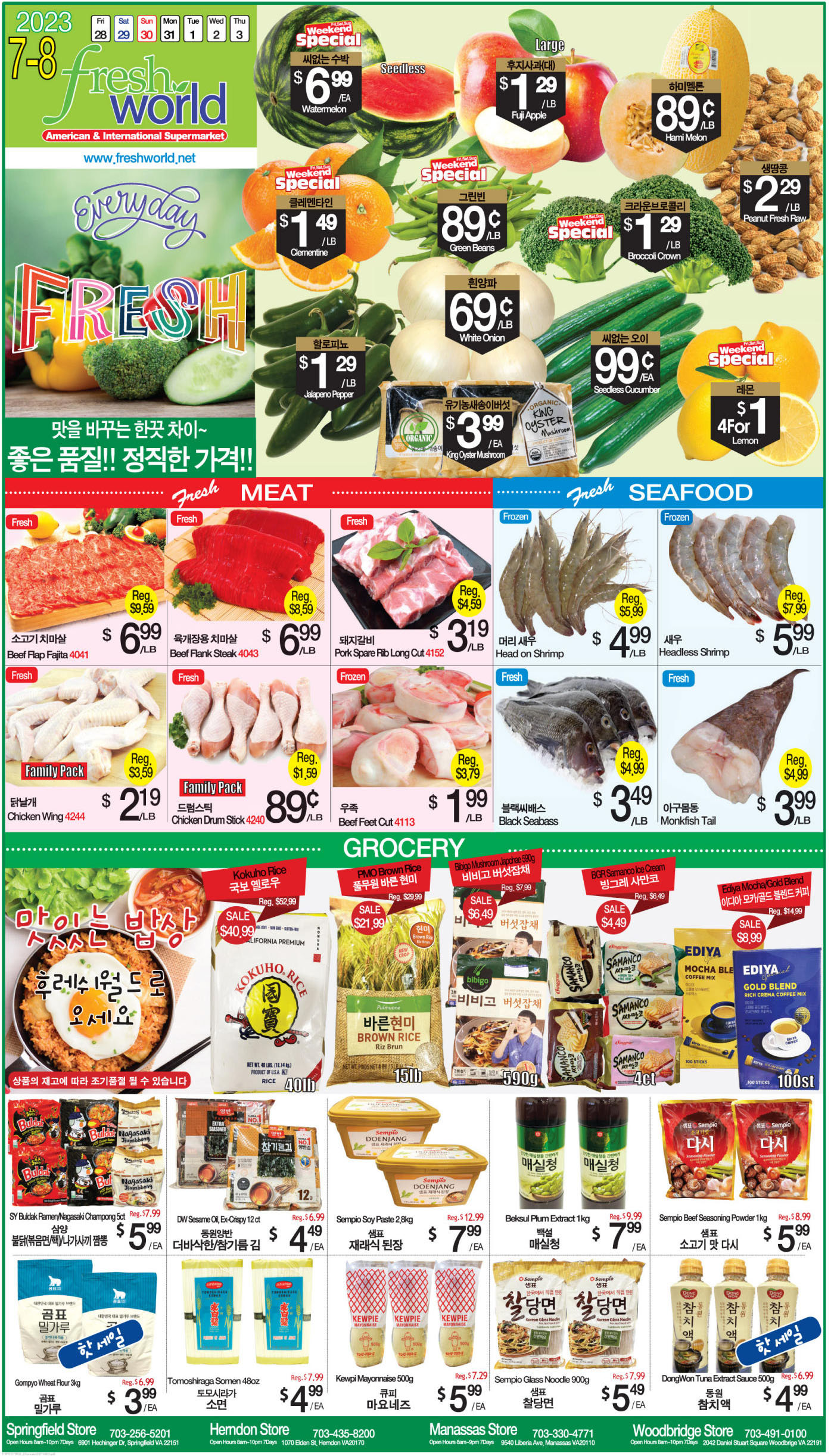 워싱턴 지역 마켓 여름 Hot Sale (7/28-8/3)