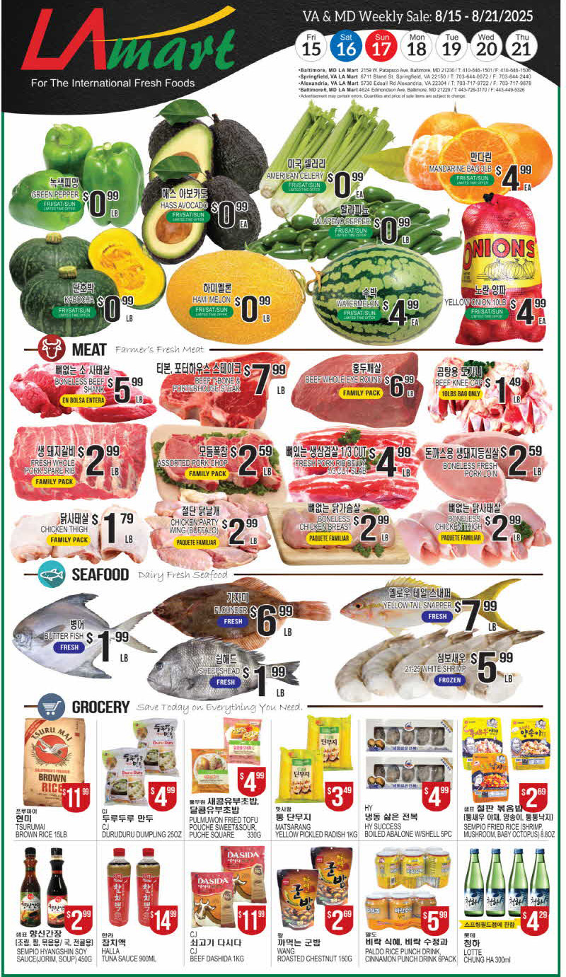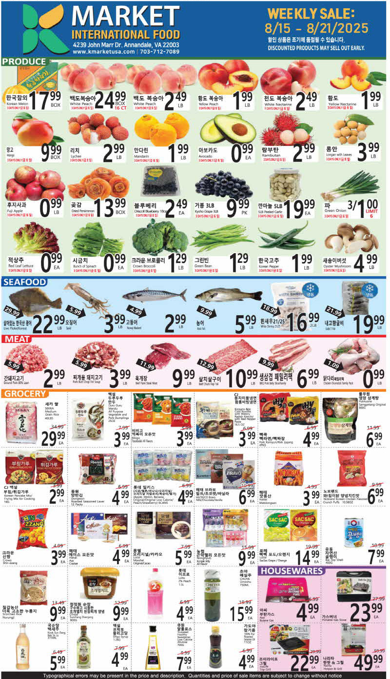 워싱턴 DMV 지역 마켓 세일정보 (8/15-21일)