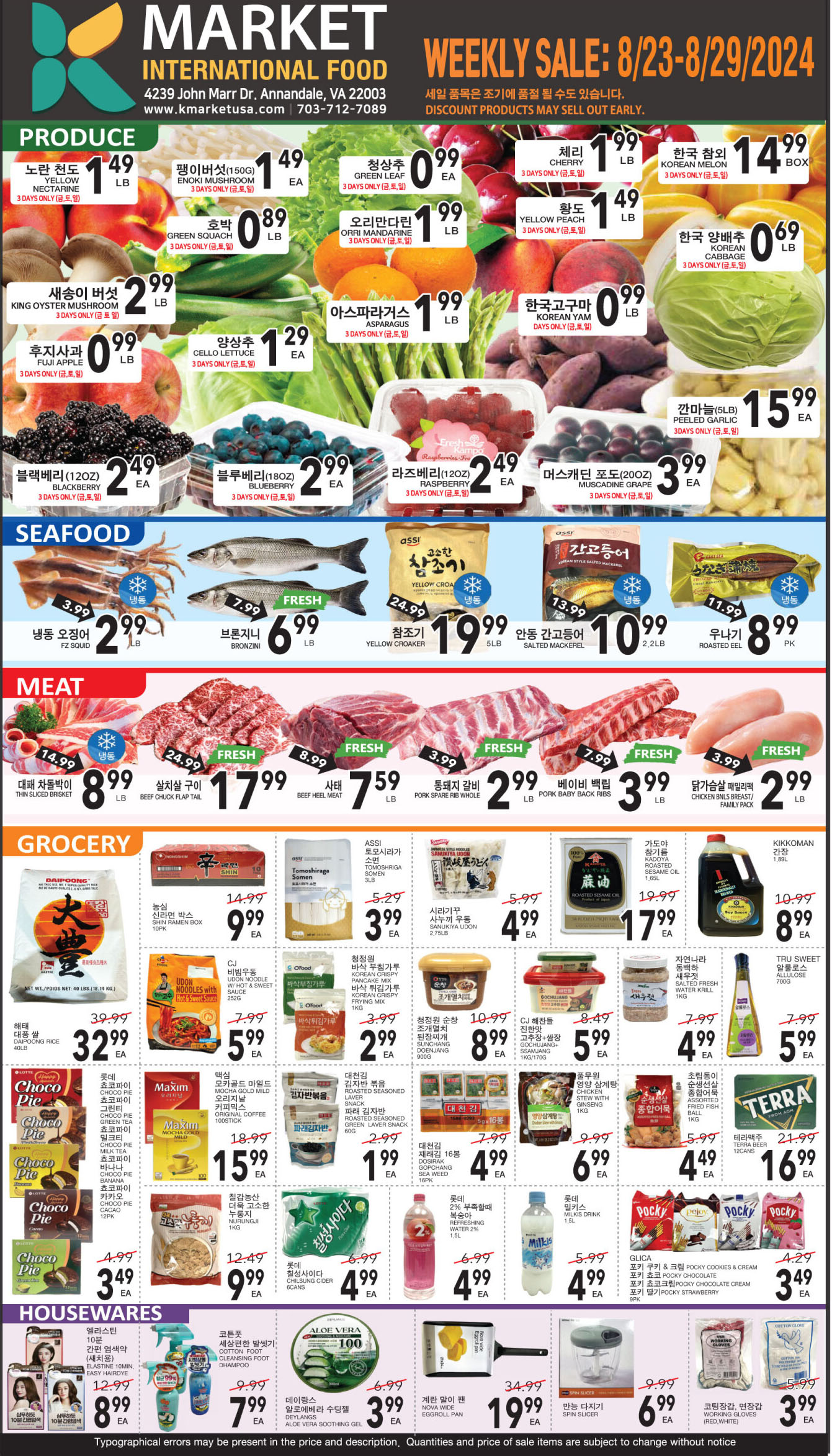 워싱턴지역 마켓 빅세일 (8/23-29일)