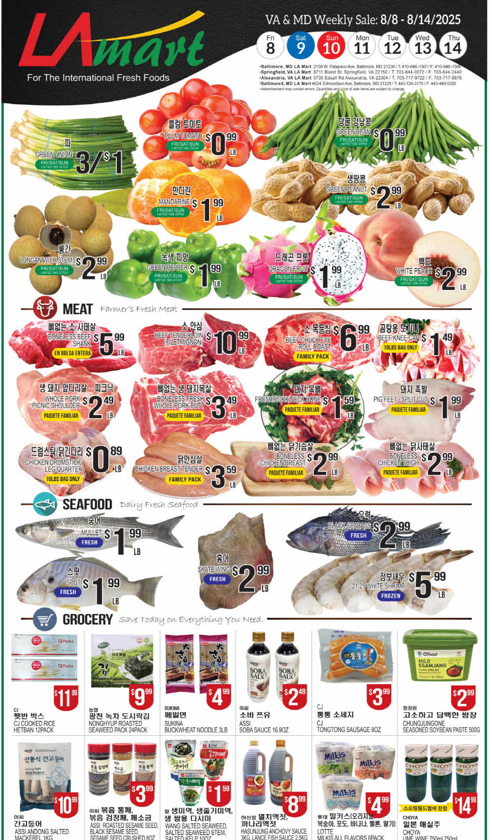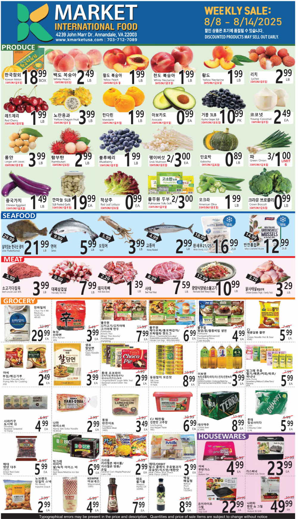 워싱턴 DMV 지역 마켓 이번주 세일정보(8/8-14일)