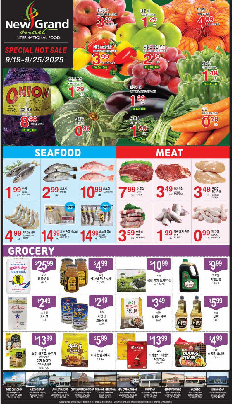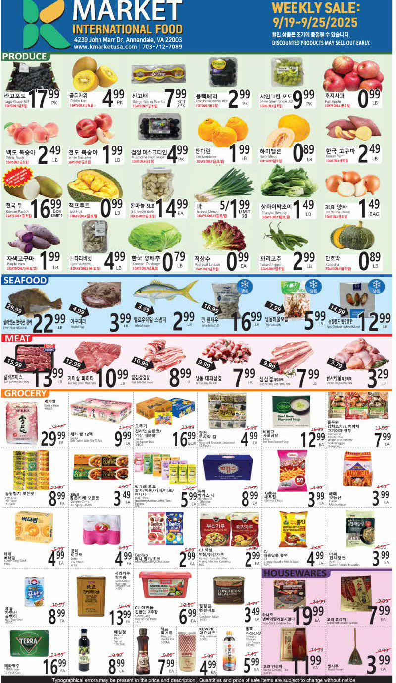 워싱턴 DMV 지역 마켓 세일정보(9/19-25)