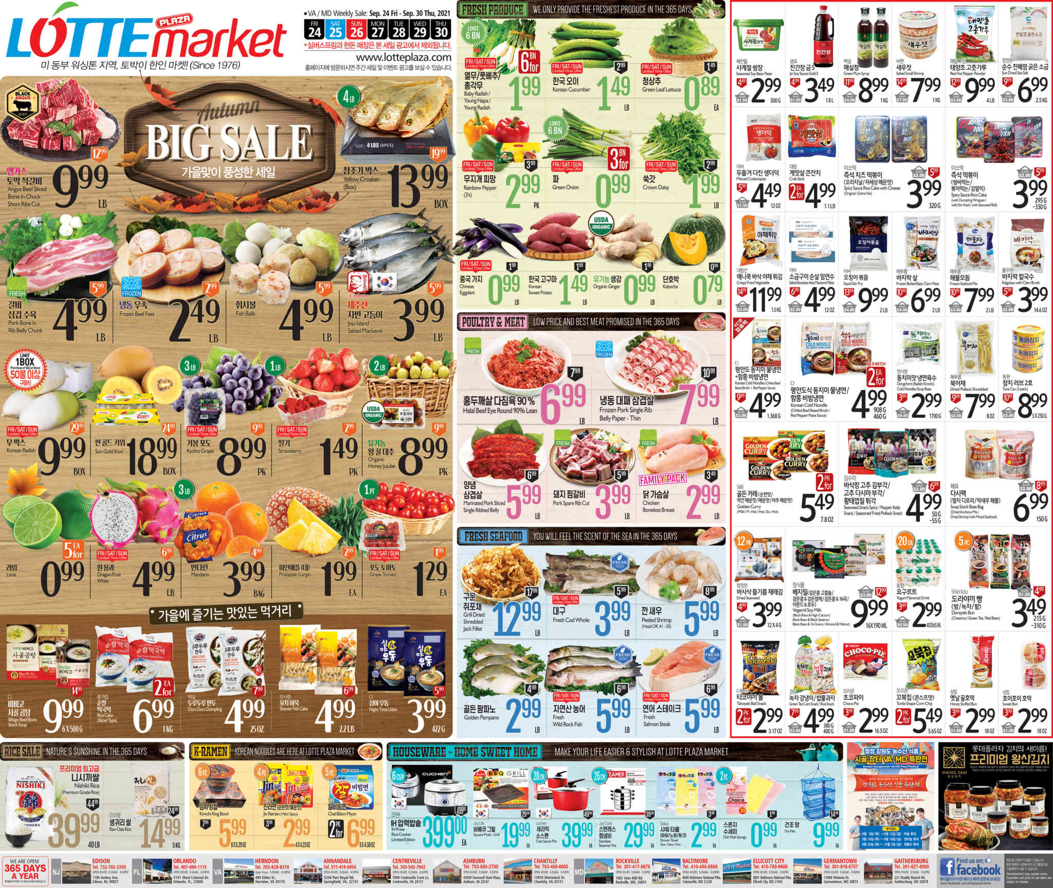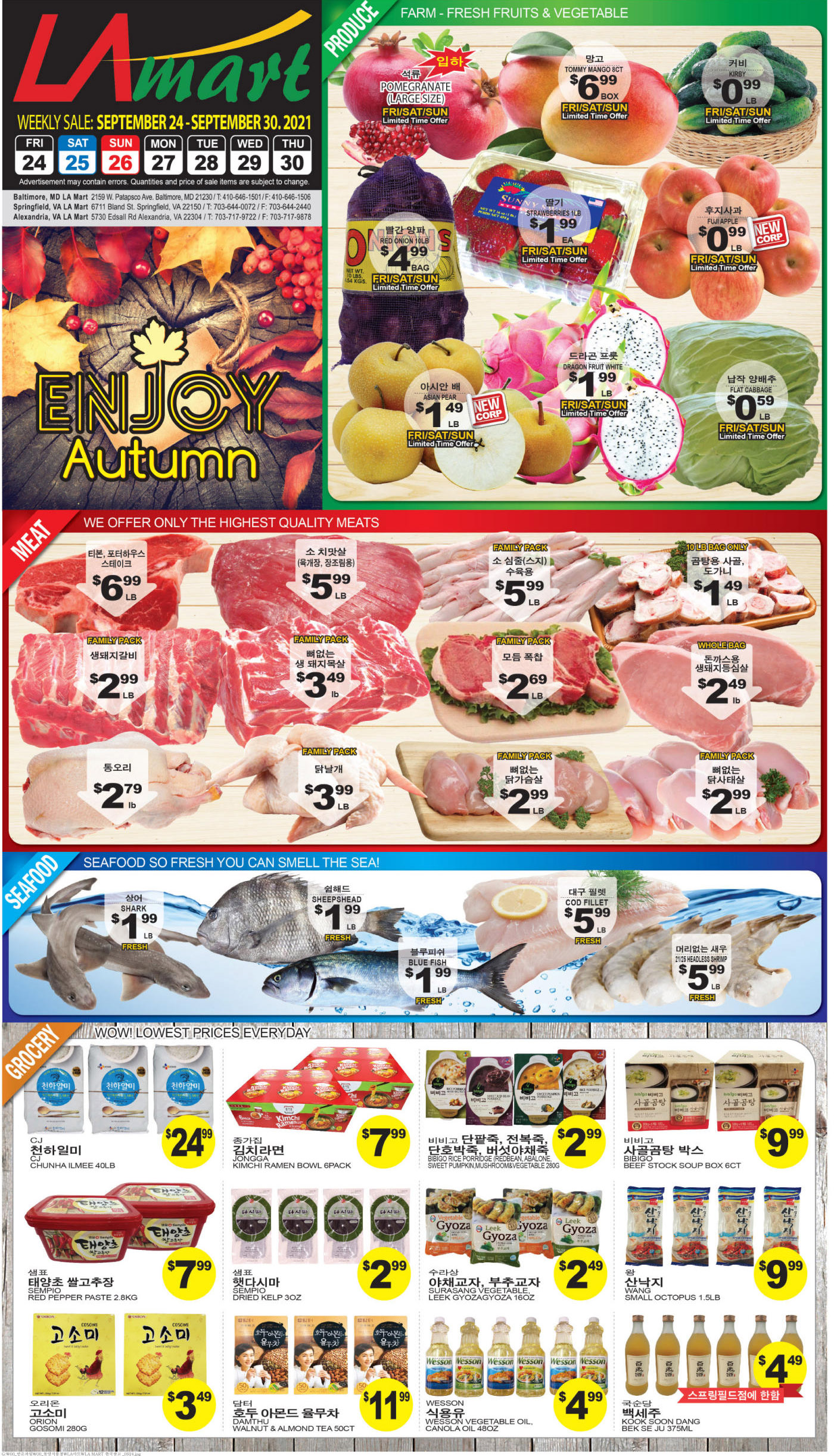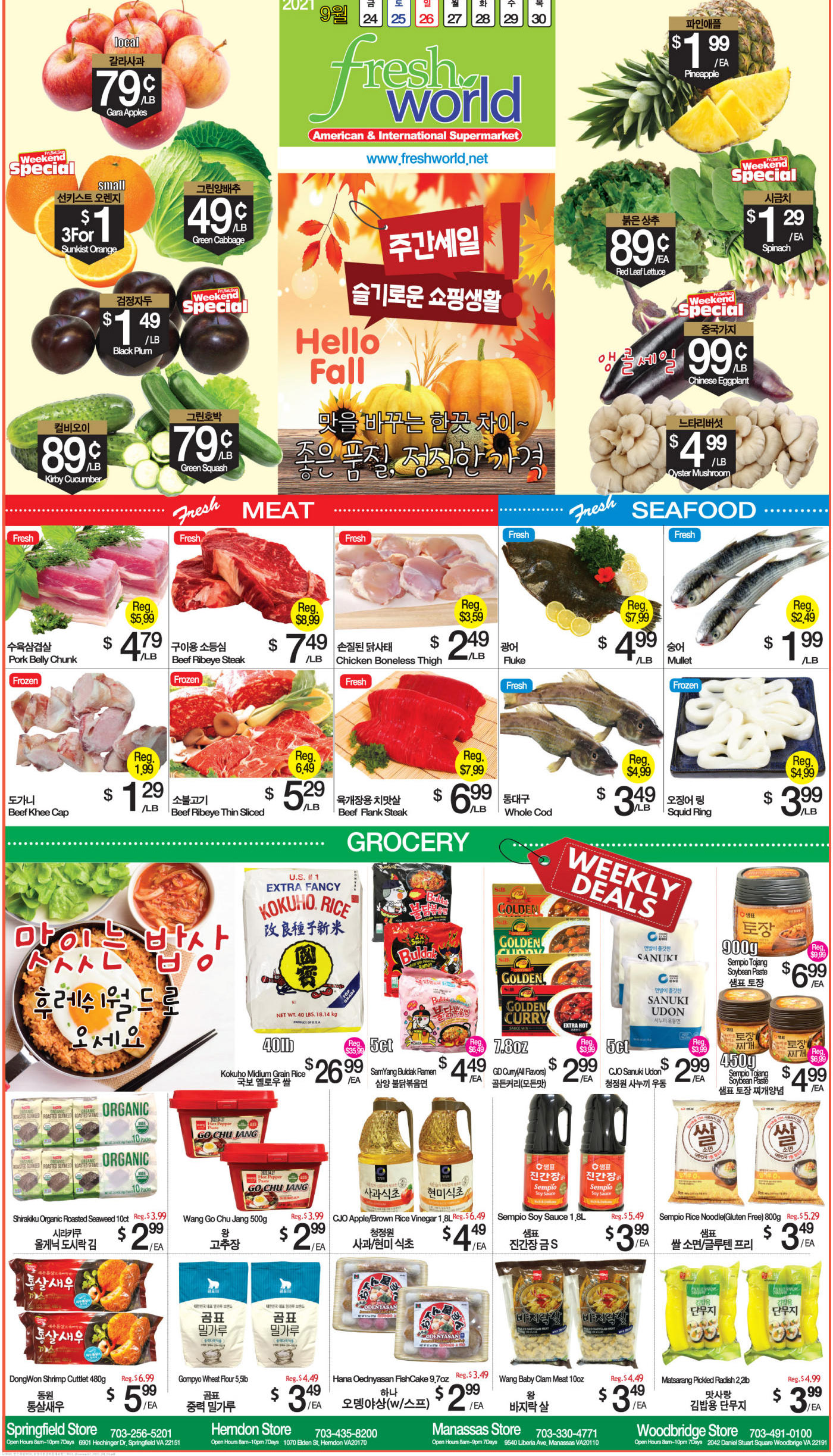 워싱턴지역 마켓 Autumn 세일(9/24-30)