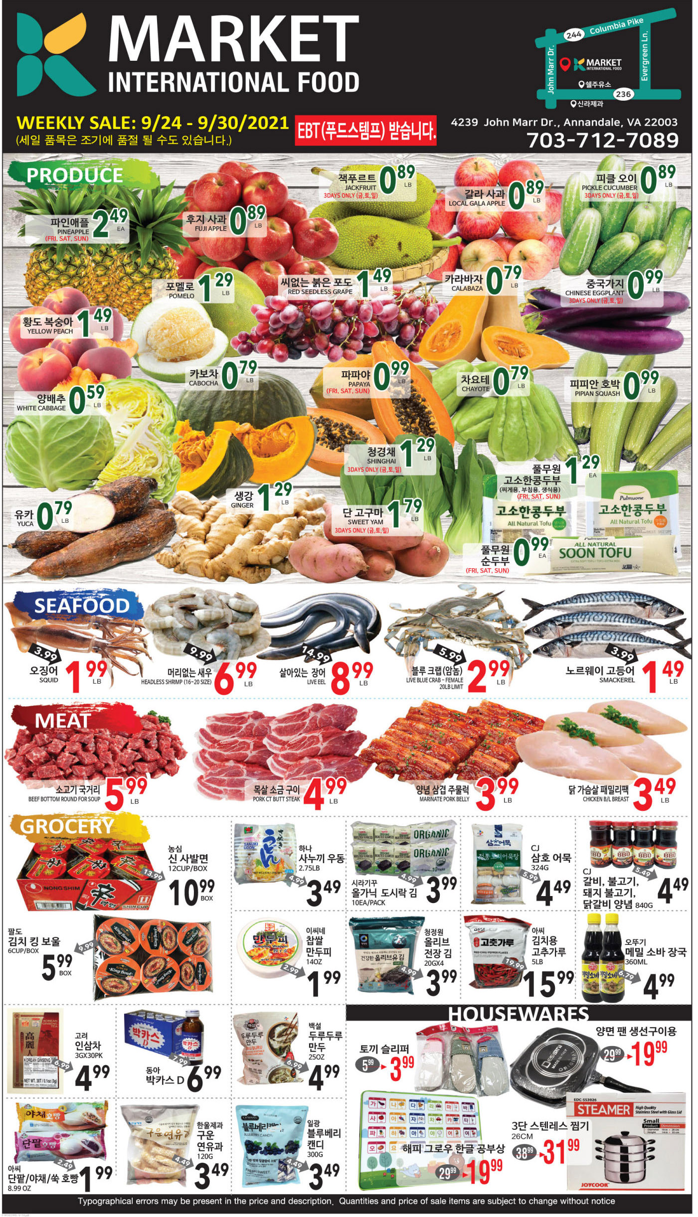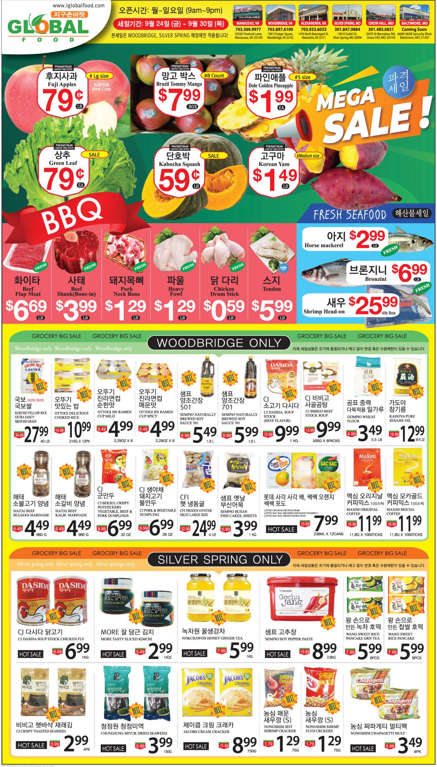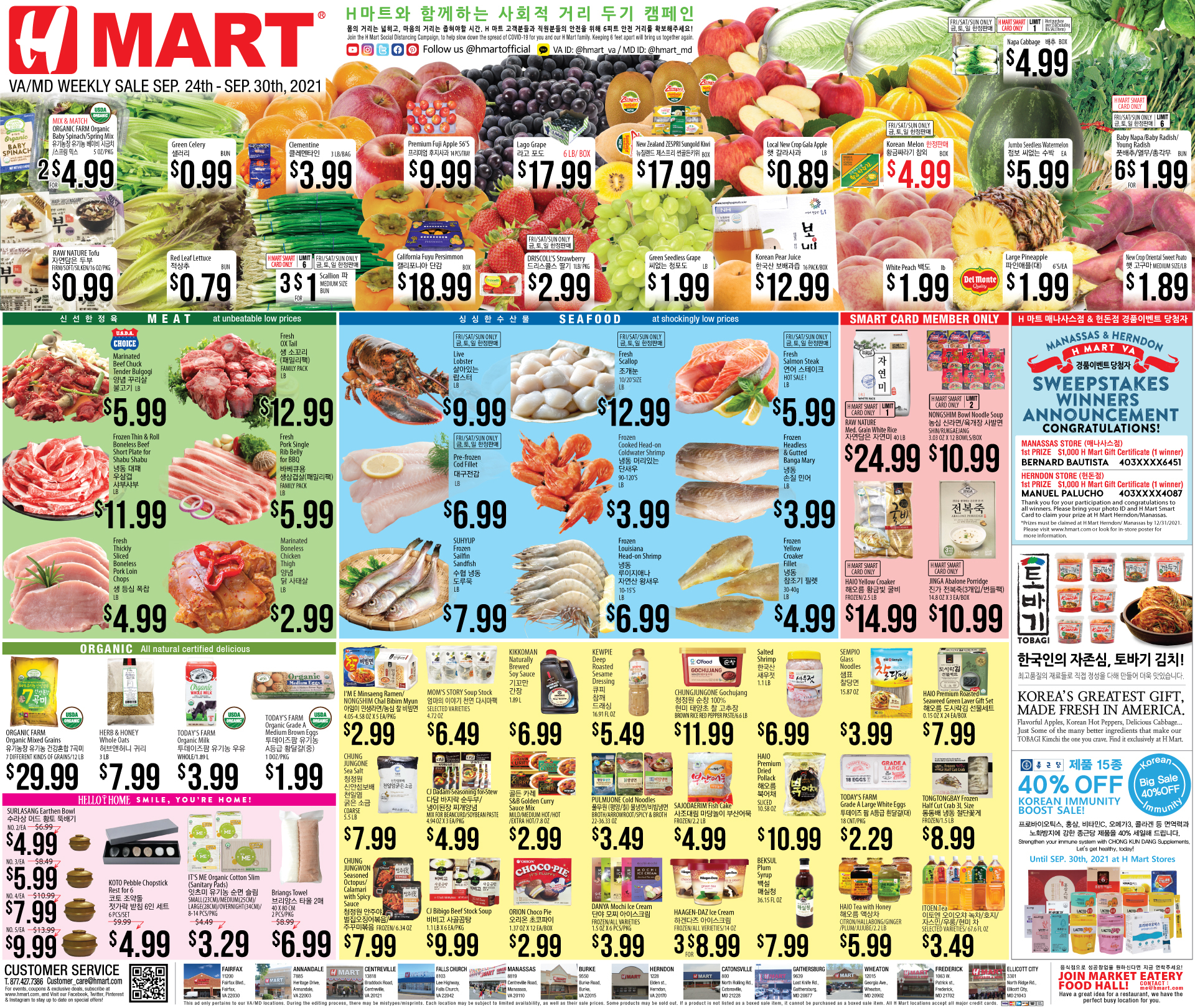 워싱턴지역 마켓 Autumn 세일(9/24-30)