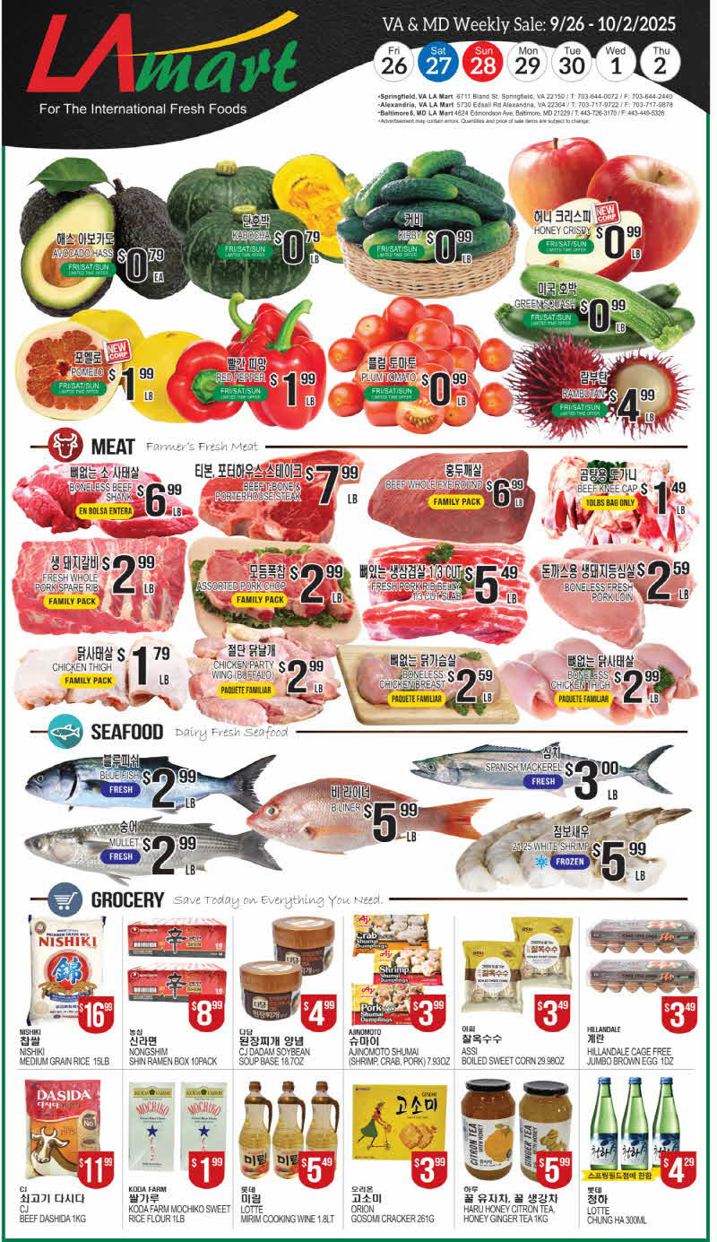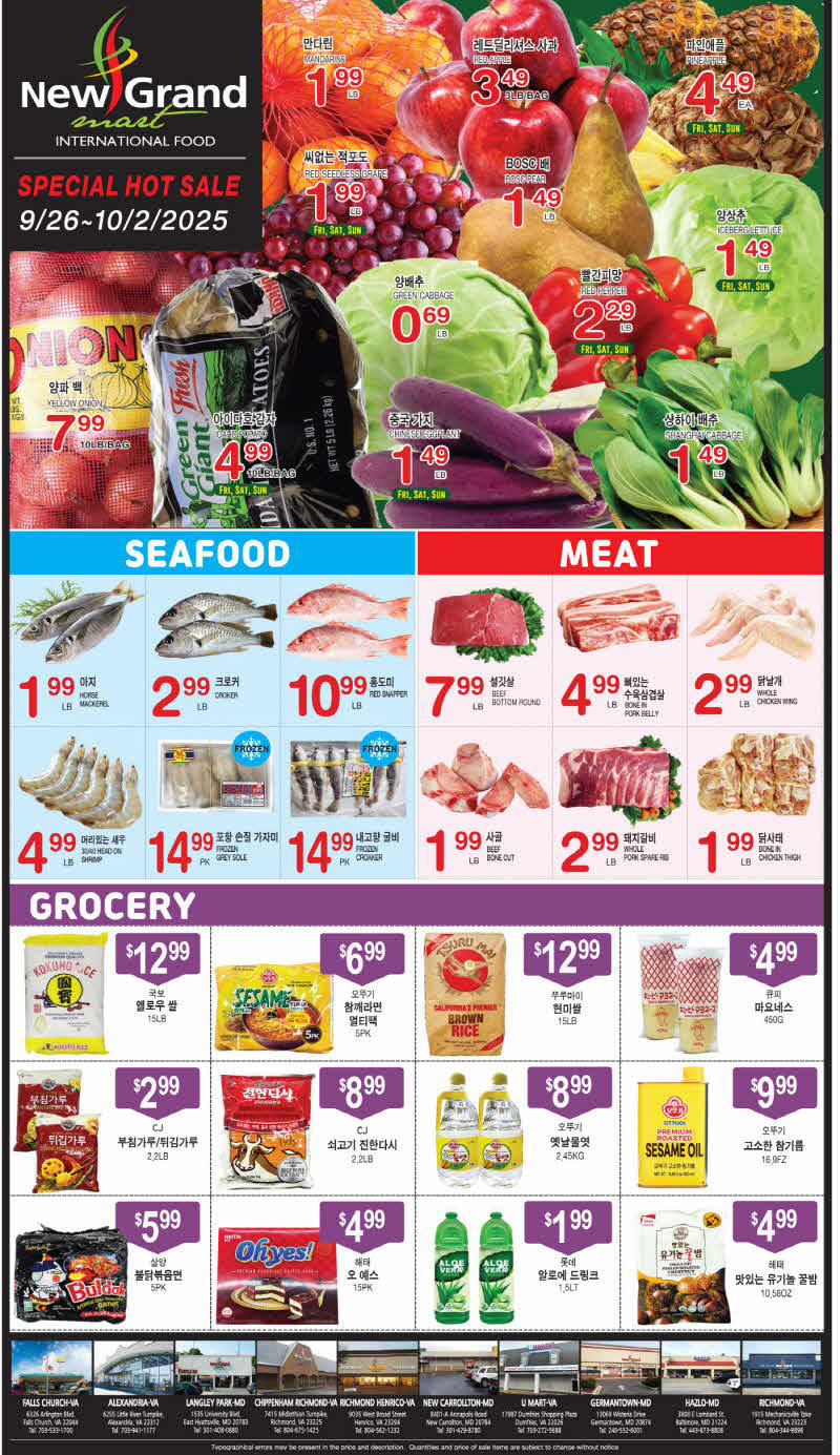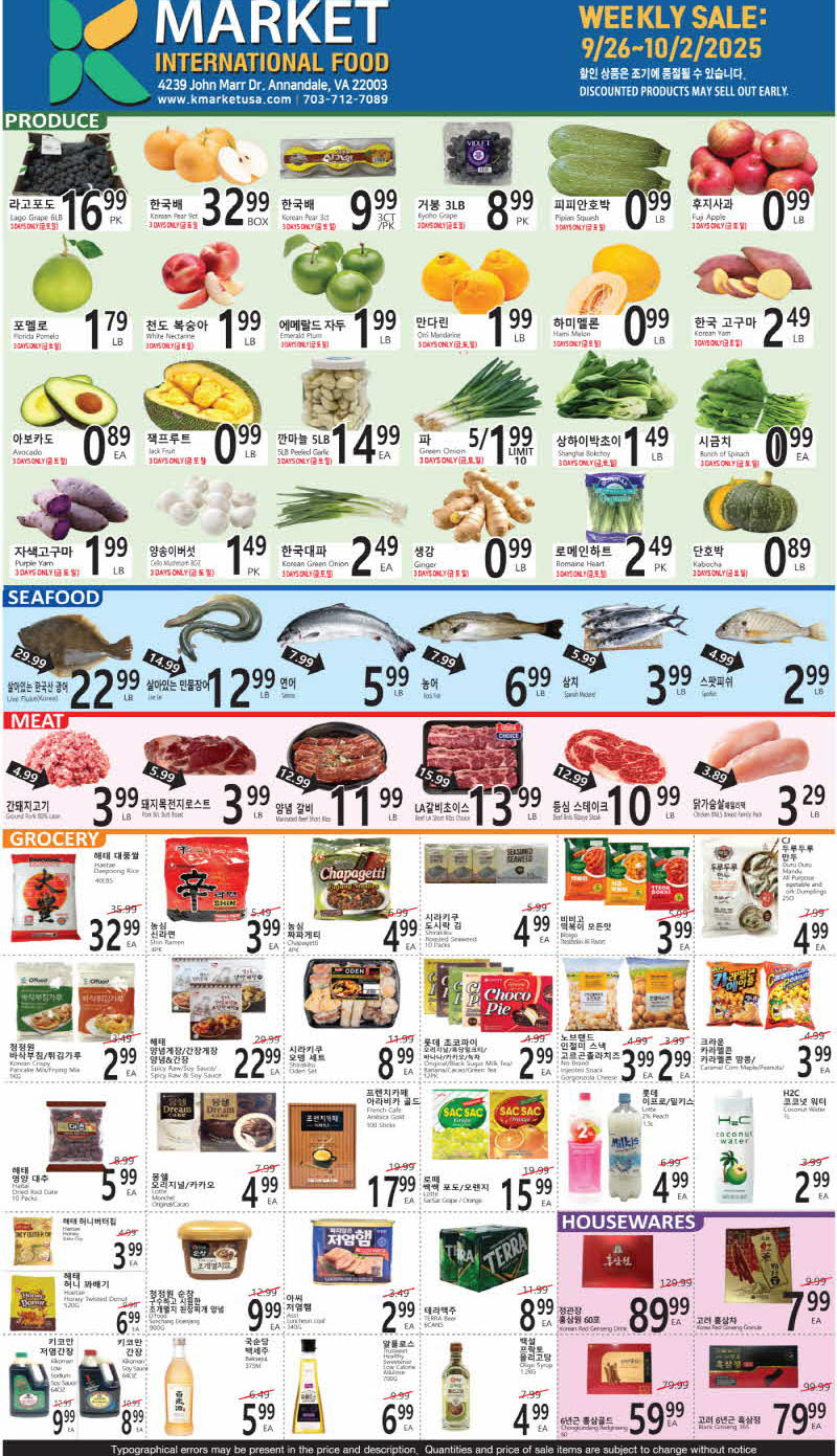 워싱턴 지역 마켓 세일정보(9/26-10/2)