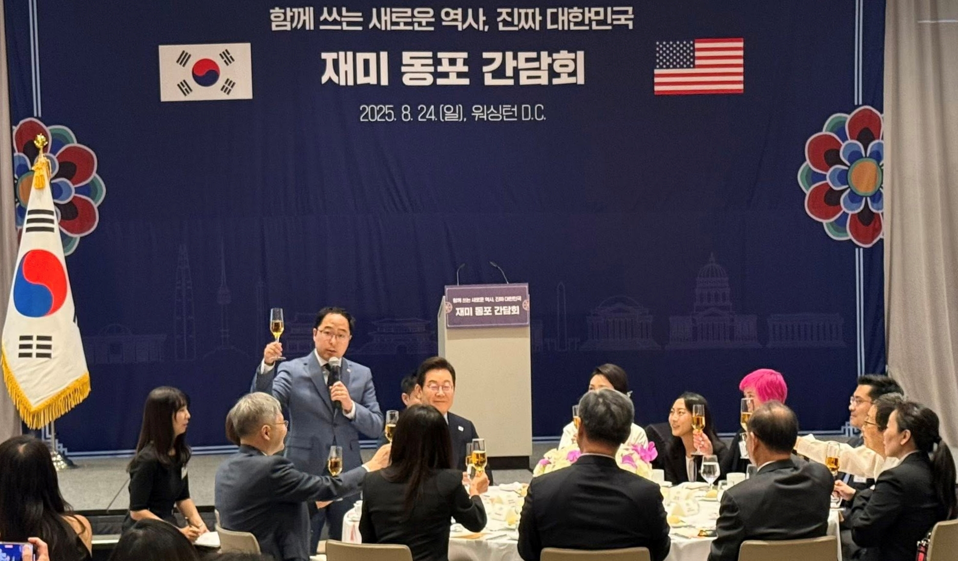 24일 오후 3시쯤(미동부시간) 미국 워싱턴 D.C. 앤드류스 합동 기지에 도착한 이재명 대통령이 방미 첫 일정으로 재미동포들을 만났다.