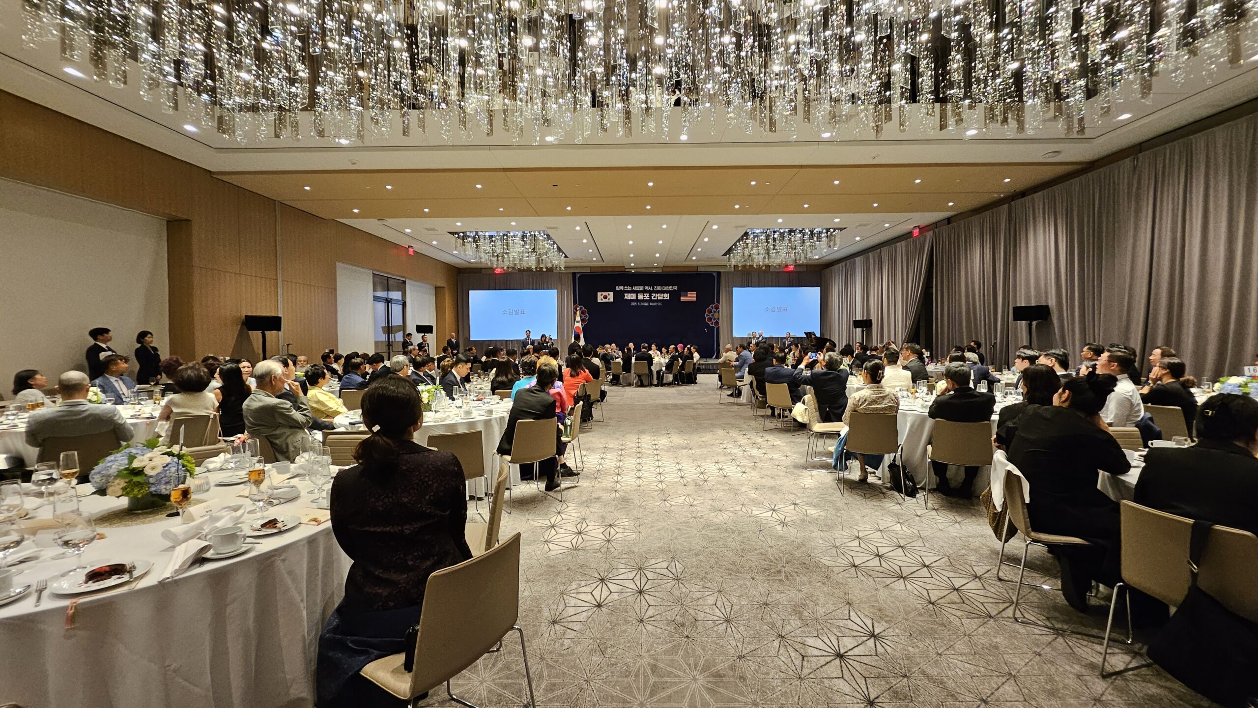 이 대통령은 이날 오후 6시경 워싱턴 DC에 소재한 ‘CONRAD 호텔’에서 재미동포들과 만찬 간담회를 갖고 “지구 반대편에서 여러분들을 뵙게 돼 정말 반갑고 또 한편으로 가슴 뭉클하다”고 소회를 밝혔다.
