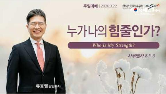 모닝뉴스[와싱톤중앙장로교회] 누가 나의 힘줄인가?, 사무엘하 8:3-6절ㅣ류응렬 목사 (3/22/2026) by 이태봉 기자2026-03-23 누가 나의 힘줄인가?, 사무엘하 8:3-6절ㅣ류응렬 목사 (3/22/2026) 하이유에스코리아 편집국