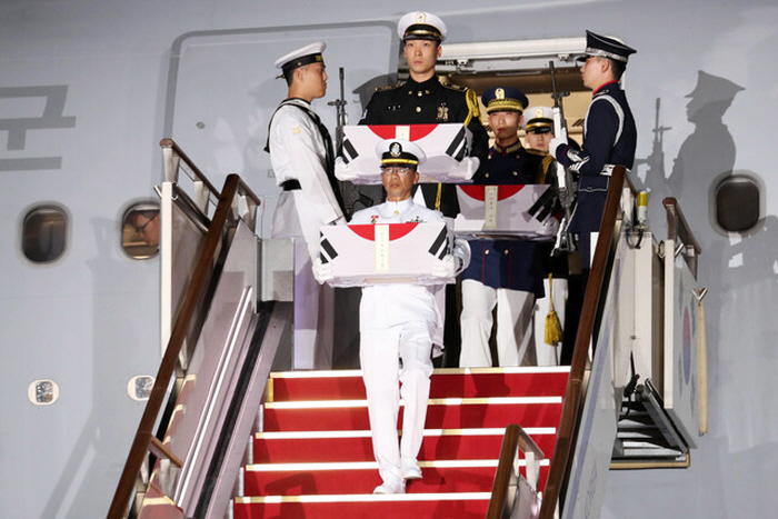 윤석열 대통령은 26일 밤 성남 서울공항에서 6·25 전쟁 국군 전사자 7인의 유해 봉환 행사를 주관했다.