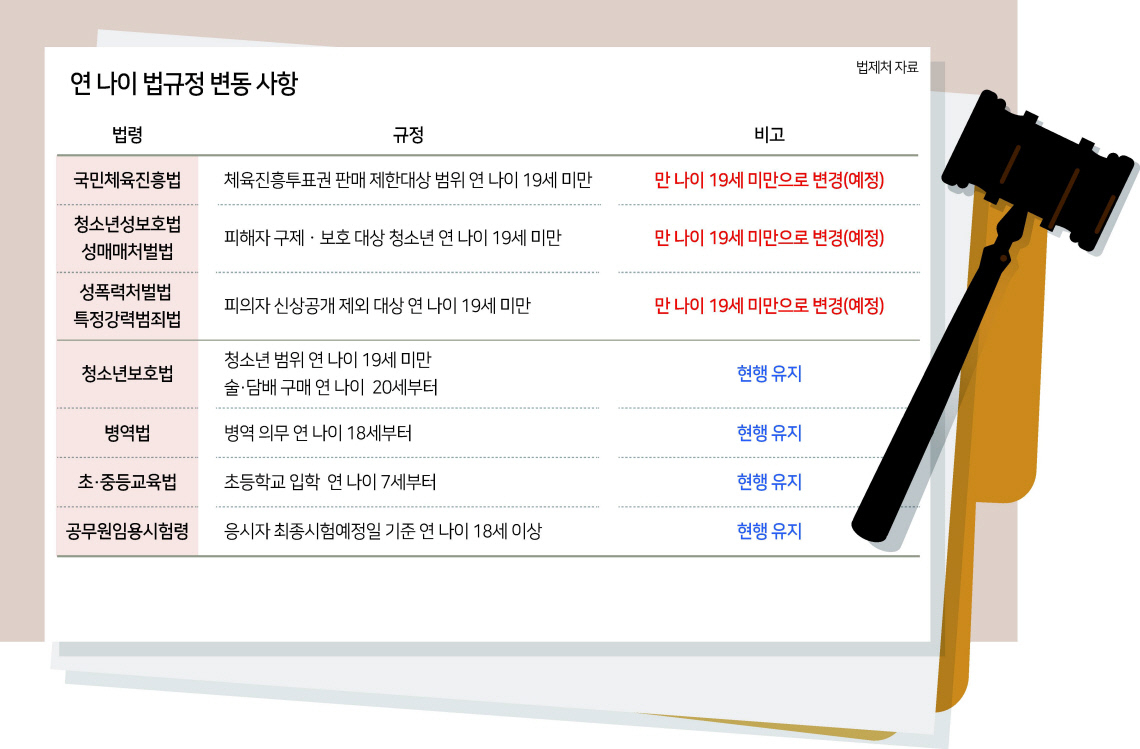 한국은 내일(28일)부터 법적·사회적 나이를 만 나이로 적용하는 ‘만 나이 통일법’이 시행됩니다. 법률상 특별한 규정이 없으면 행정·민사상 나이는 모두 만 나이로 계산하고 표시하게 됩니다. 만 나이는 태어난 날부터 0살로 시작해 생일마다 1살씩 더하는 나이 계산법으로 미국과 같습니다. 다만 취학연령과 주류·담배 구매, 병역 의무, 공무원 시험 응시 등 일부 분야에서는 기존 ‘연 나이’를 사용합니다.