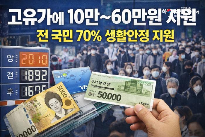 정부가 중동발 고유가와 물가 상승으로 인한 국민 부담을 완화하기 위해 최대 60만원 규모의 ‘고유가 피해지원금’ 지급에 나선다. 전체 국민 가운데 소득 하위 70%가 대상이며, 취약계층부터 우선 지원이 이뤄진다.