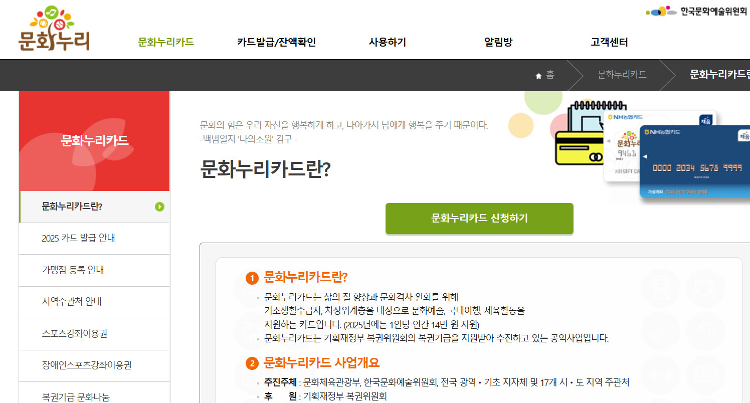 2025년 문화누리카드가 2월부터 본격적으로 지급되고 있다. 문화누리카드는 기초생활수급자와 차상위계층을 대상으로 연간 14만 원을 지원해 문화예술·여행·체육 등 다양한 분야에서 사용할 수 있도록 돕는 정부 지원제도다.