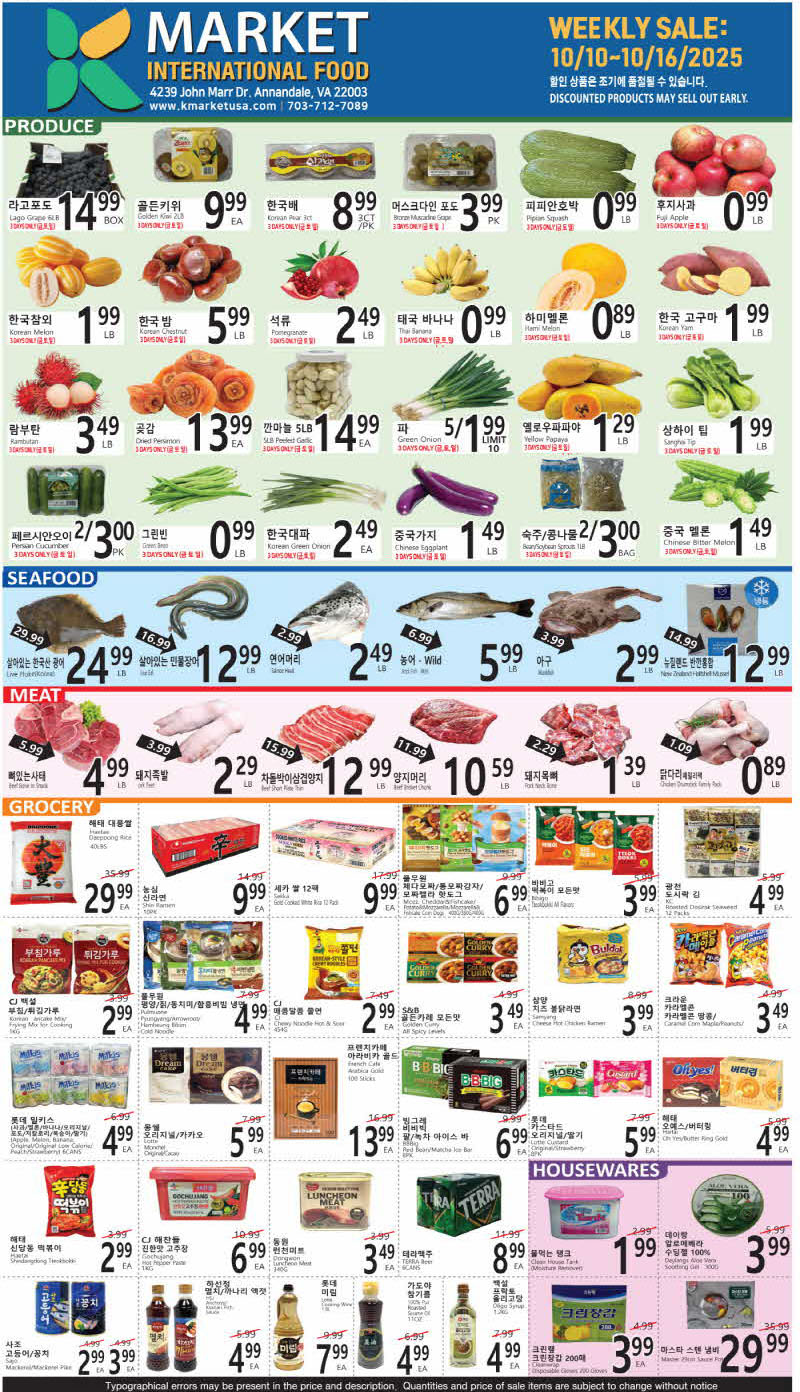 워싱턴 DMV 지역 마켓 세일(10/11-16)