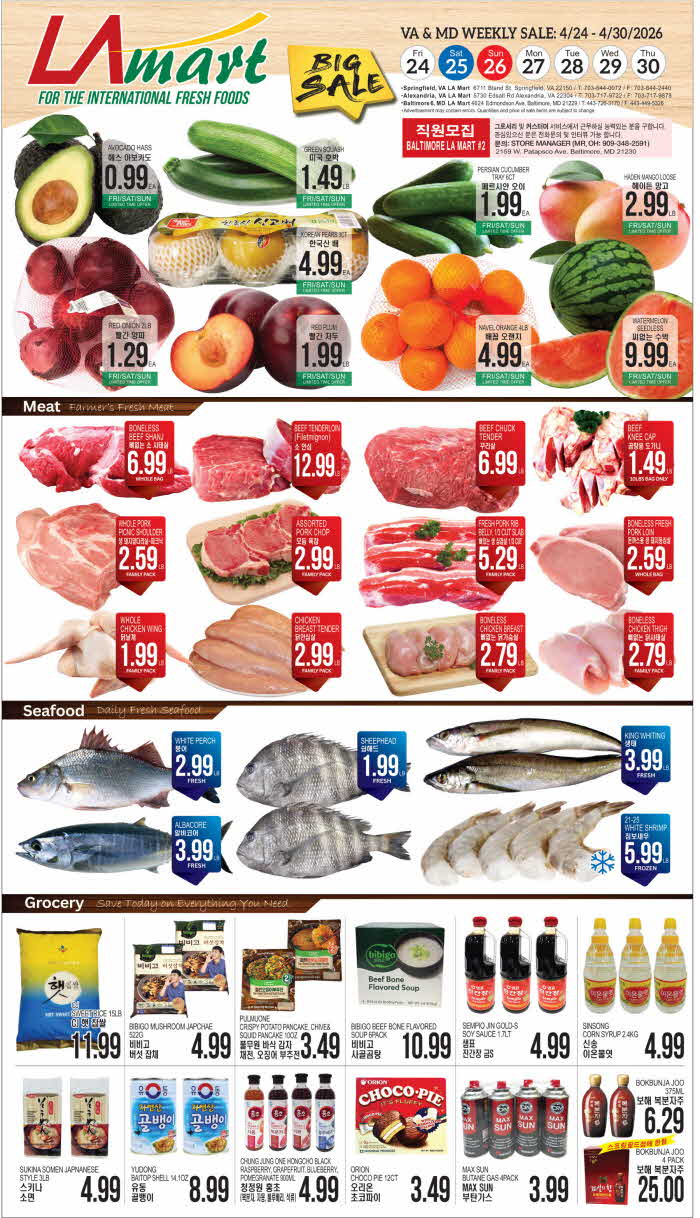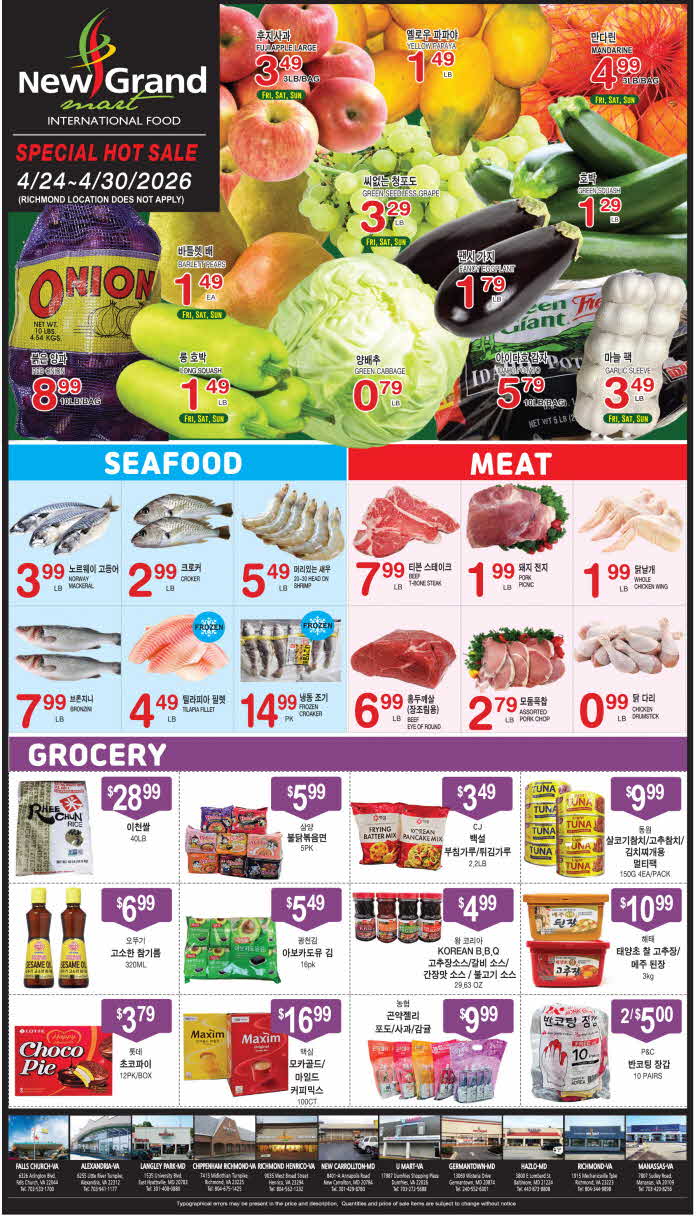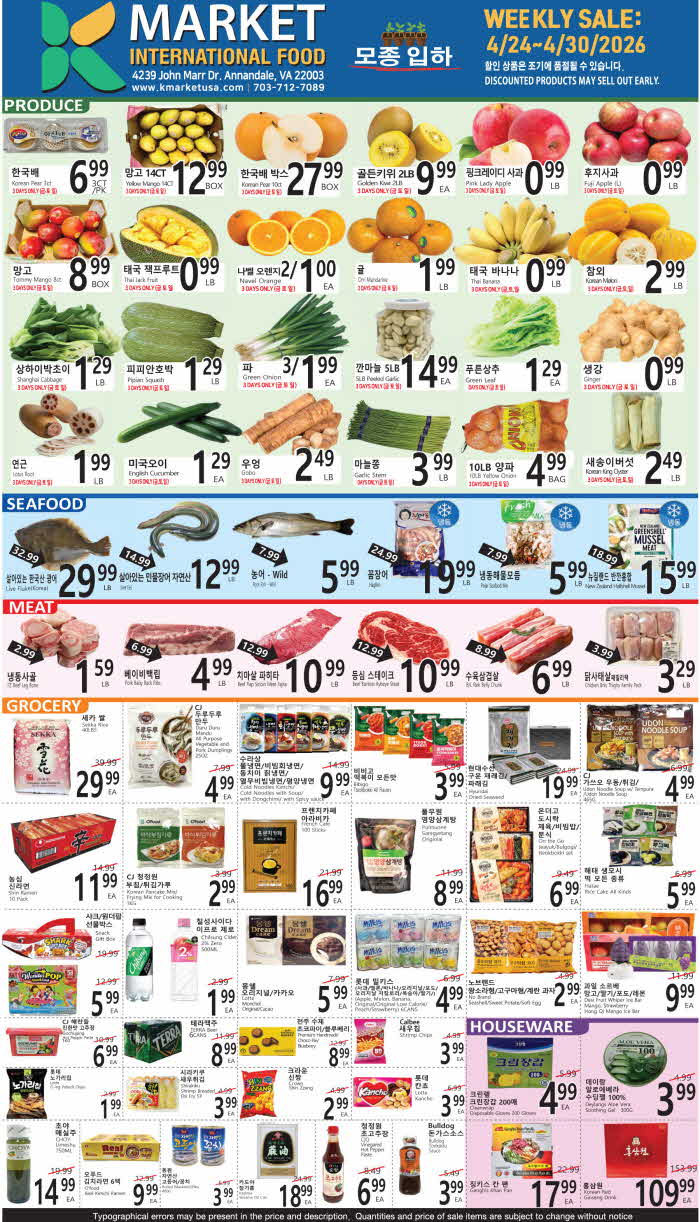 워싱턴 DMV 지역 마켓 세일정보(4/24-30)